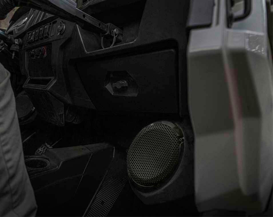 - Tableau de bord à indication numérique avec écran LCD 4", Direction assistée, différentiel arrière verrouillable, demi-portes, indicateur de vitesse, odomètre, tachymètre, compteur kilométrique journalier, compteur horaire, voyant de feux de route, indicateur de rapport, jauge de carburant, témoins d’avertissement (température, batterie), prise C.C.
